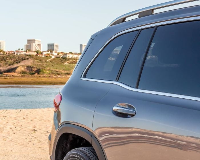 Sleep and purposeful, the roof rails on the 2023 Mercedes-Benz GLB accommodate a variety of available accessory attachments for carrying bikes, surfboards, skis, snowboards, and cargo carriers.