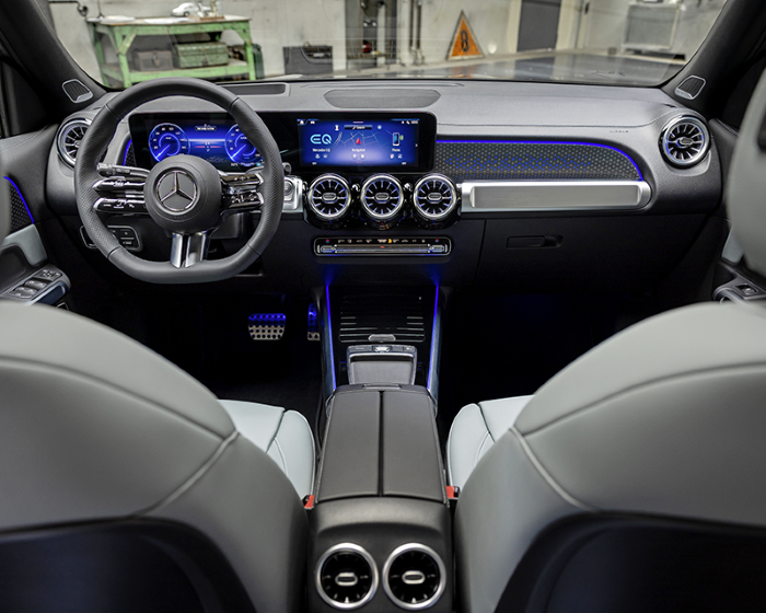 - In EQB you'll experience an advanced MBUX generation that takes connectivity, entertainment, and safety to new heights/ Tailor the central display's aesthetics with three display styles (subtle/sporty/classic) and access three modes (navigation/assistance/service)